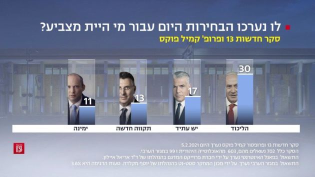 מדגם חדשות 13 כחול לבן 33 הליכוד 31 יתרון לשמאל מרכז Youtube